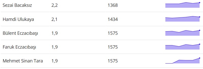 | ISCTR | 13,57 | 1,72 | 339.249.592.900,00 |