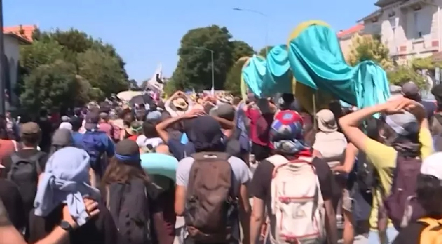 Fransa'nın batısındaki liman kenti La Rochelle'de, plastik kaplı su deposu projesine karşı çıkan 4.000'e yakın gösterici, Cumartesi günü sokaklardaydı.