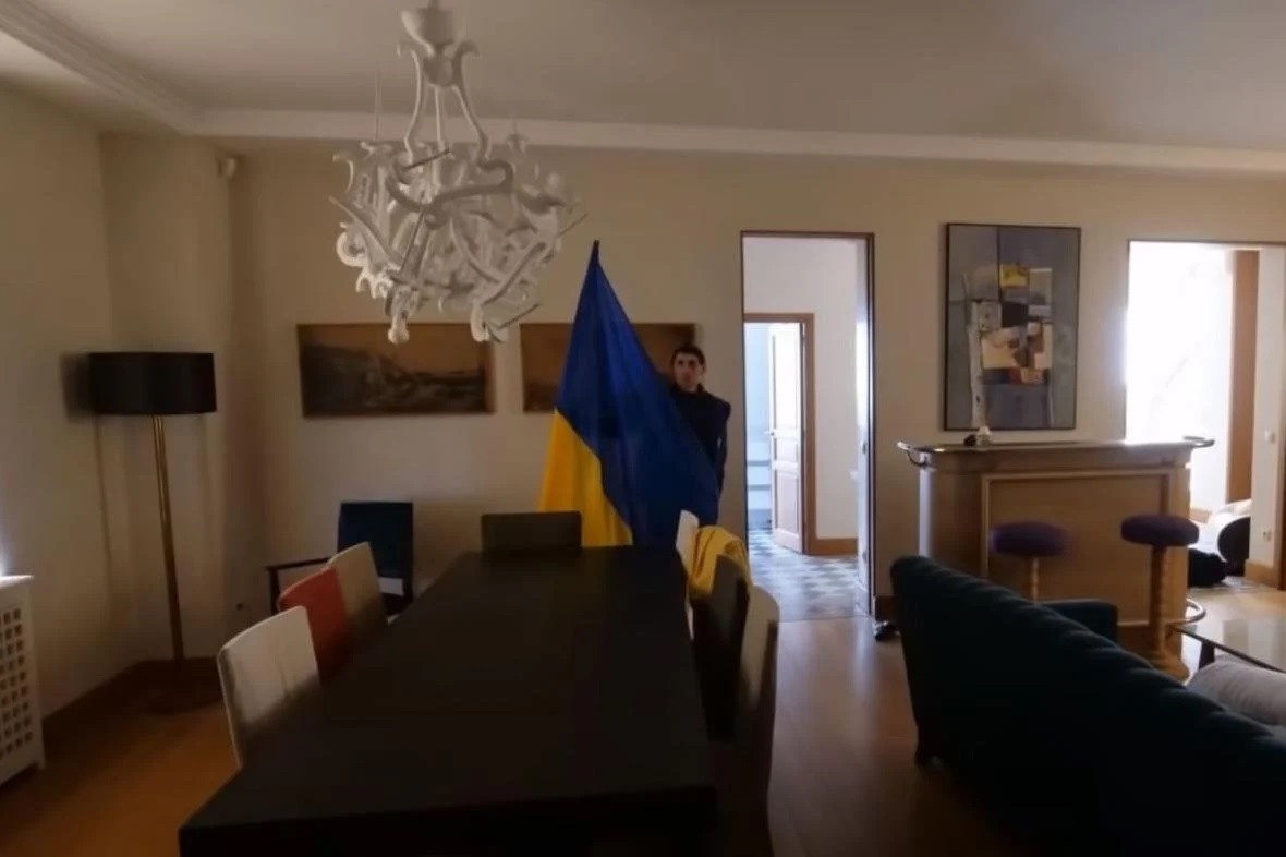 Rus işgali başladığında, Ocheretny villası Ukrayna’daki savaşın sembolü haline gelen sarı ve mavi renklerinde Putin karşıtı sloganlarla süslenmişti.