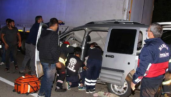 Manisa'nın Kula ilçesinde seyir halindeki hafif ticari araç, frenin patlaması sonucu önünde giden ve yavaşlayan TIR'ın altına girdi. Kazada hafif ticari araçta bulunan 4 kişi yaralandı.