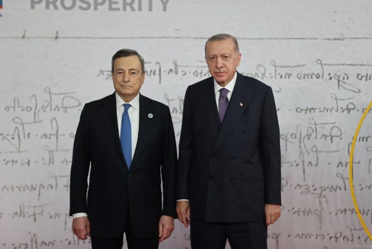 Draghi, Cumhurbaşkanı Recep Tayyip Erdoğan'ın da aralarında bulunduğu konuklarını tek tek kapıda karşıladı.