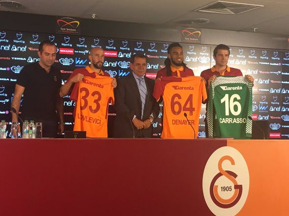 Galatasaray'da yeni transferler Jason Denayer, Iasmin Latovlevic ve Cedric Carrasso için imza töreni düzenledi.