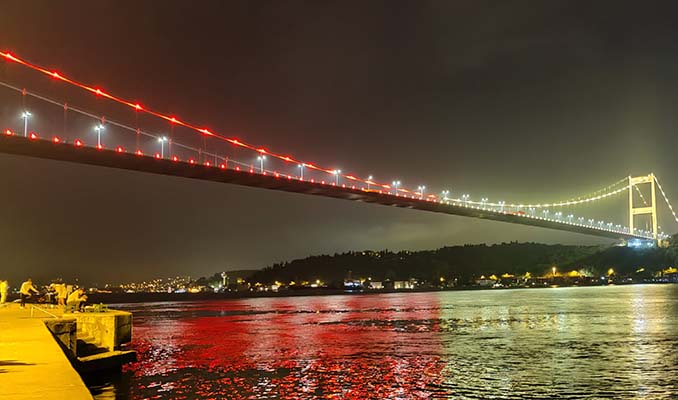 Trendyol Süper Lig 2024-2025 sezonunun tamamlanmasına iki hafta kala şampiyonluğunu ilan eden Galatasaray, 25'nci kez mutlu sona ulaşarak 5'nci yıldızı aldı. Sarı-kırmızı renkler İstanbul Boğazı'ndaki köprülere yansıtılırken, Galatasaray bayrağı FSM Köprüsü'ne asıldı. Fatih Sultan Mehmet Köprüsü şampiyonluk kutlamaları kapsamında gece boyunca sarı-kırmızı ışıklarla aydınlatıldı. Köprülerden yansıyan ışıklar görsel şölen oluşturdu.
