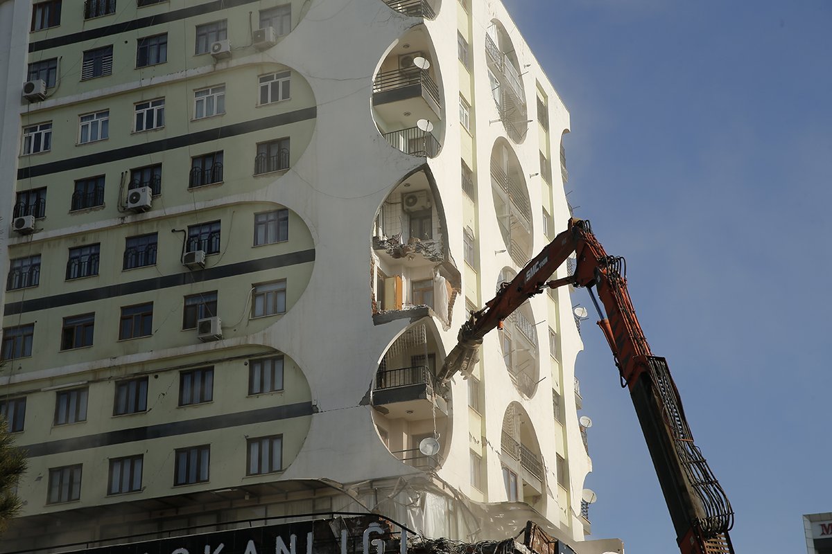 Kahramanmaraş merkezli depremlerden etkilenen 11 ilden biri olan Diyarbakır’da Sur, Yenişehir ve Bağlar ilçelerinde ilk etapta ağır hasarlı 35 yapının yıkımı için başlatılan çalışmalar sürerken; Yenişehir ilçesinde bulunan ve kolonlarının kesildiği iddia edilen Galeria İş Merkezi ve üstündeki sitede arama kurtarma çalışmalarının tamamlanmasının ardından kontrollü şekilde yıkım başladı.