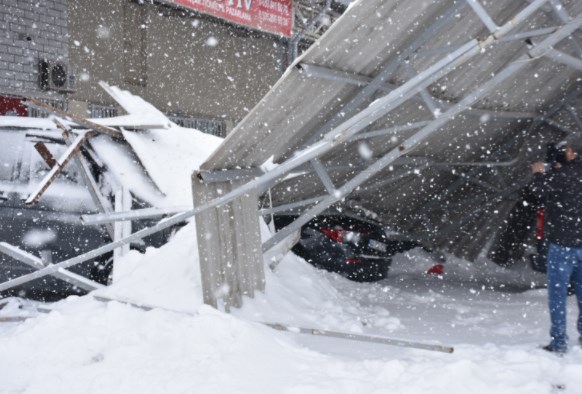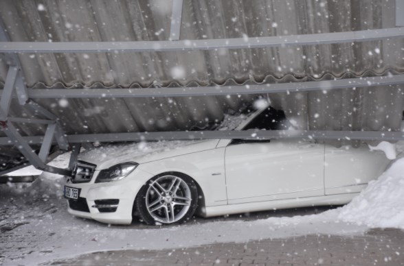 Kentte dün öğleden beri etkili olan kar yağışı hayatı olumsuz etkiledi. Bugün öğle saatlerinde Hoca Ahmet Yesevi Mahallesi'ndeki Galericiler Sitesi'nde araçların sergilendiği 6 iş yerinin önündeki alanda bulunan çatı çöktü. Çökmeyle birlikte 15 araçta hasar meydana geldi.