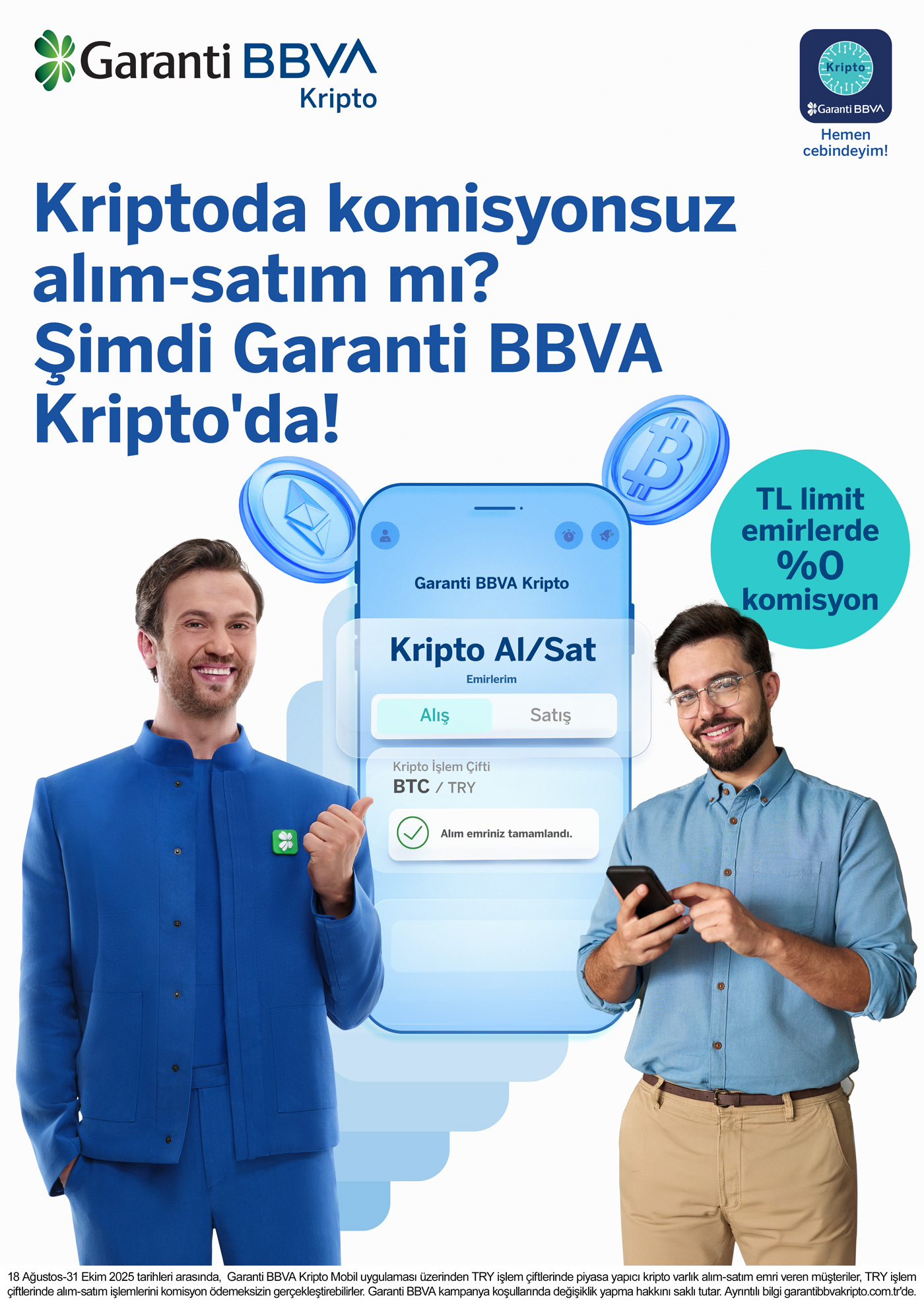 Garanti BBVA Kripto, kripto varlık yatırımcılarına sunduğu kolay, hızı ve kolaylığı ön plana alan bir yatırım deneyiminin yanı sıra kullanıcıları için farklı avantajları da hayata geçiriyor. Garanti BBVA’nın güçlü altyapısıyla geliştirilen ve kullanıcı dostu ve bir işlem deneyimi sunan Garanti BBVA Kripto, yatırımcıların limit emir fonksiyonunu daha avantajlı şekilde kullanabilmesi için yeni bir kampanya başlattı. Garanti BBVA Kripto, şimdi TRY paritesinde verilen tüm piyasa yapıcı olarak gerçekleşen emirler için komisyon ücretini sıfırlıyor.