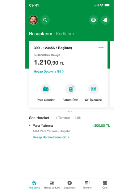 Hızlı işlemler alanında yer alan “Şubeye Gitmeden Yap” adımı sayesinde kullanıcılar, işlemlerin dijitalden nasıl yapıldığını kolayca öğrenebiliyor ve ilgili adıma hızlıca yönlendiriliyor. Bu sayede Garanti BBVA Mobil’i yeni deneyimleyecek bir müşteri, uygulamayı yardıma ihtiyaç duymadan rahatlıkla kullanabiliyor. Garanti BBVA Mobil’e giriş yaptıktan sonra benzer yalın deneyim devam ediyor. Kullanıcılar hesap bakiyelerini, kredi kartı limitlerini ve son hareketlerini kolayca görüntülerken, en çok ihtiyaç duydukları fonksiyonlara tek tıkla ulaşabiliyor.