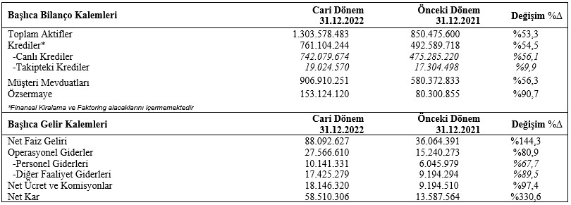 Garanti BBVA’nın Seçilmiş Konsolide Finansal Göstergeleri – 31 Aralık 2022