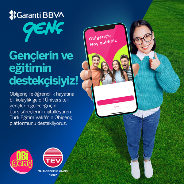 Garanti BBVA, Türk Eğitim Vakfı’nın (TEV) bursiyerleri ve Türkiye’nin dört bir yanındaki bütün üniversite öğrencileri için hayata geçirdiği dijital platform Obigenç’e destek oluyor. Bu iş birliği, burs başvuru süreçlerinin uçtan uca dijitalleştirilmesi ve bursiyerlerin özel kampanyalar, eğitimler ve seminerlerden faydalanmasını hedefliyor. TEV tarafından geliştirilen Obigenç’in Bankanın desteğiyle gençlere sürdürülebilir ve yaşayan bir platform olarak ulaşması amaçlanıyor. Ayrıca bu anlamlı iş birliği kapsamında Obigenç’ten faydalanan 20 bin TEV bursiyerinin burs ödemeleri Garanti BBVA aracılığıyla gerçekleştiriliyor.