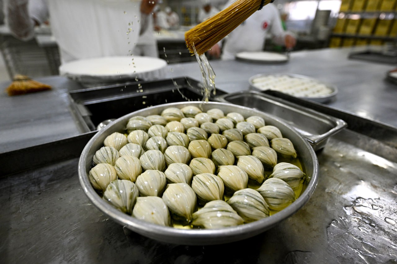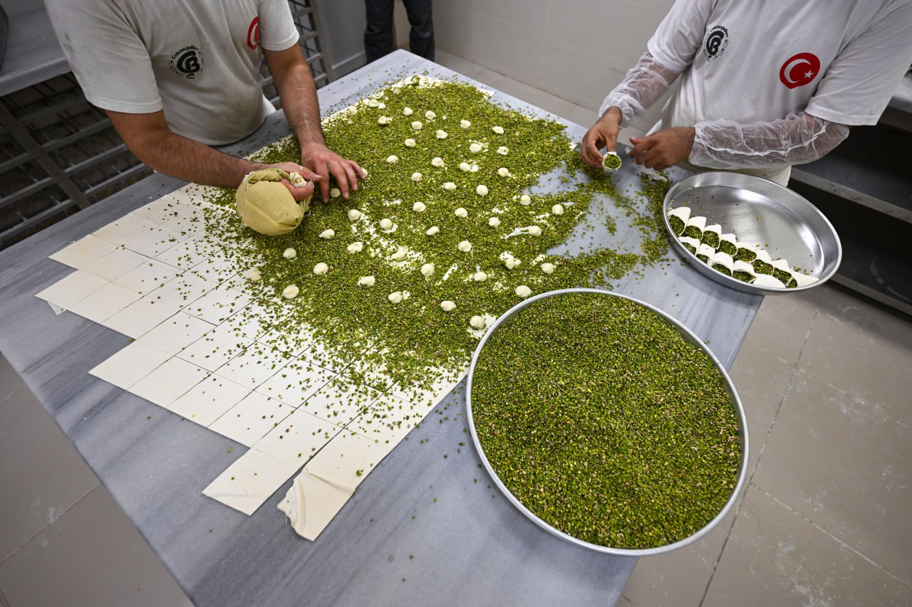 "Meşakkatli ama tatlı bir yoğunluk var. Bu tatlı yoğunluğun sonunda tezgahlara koyduğumuz baklavaları dünyanın dört bir tarafına gönderiyoruz. Gaziantep'te günlük üretim normal zamanlarda 30 ton. Bayram yoğunluğunun başlamasıyla iki katına yani 60 tona çıkıyor. Arife gününde ise 70-80 tonları buluyor. Üretilen baklavanın üçte ikisi yurt içi ve yurt dışı, geriye kalanını Gaziantepliler ve kente gelen turistlerin tüketimi oluşturuyor."