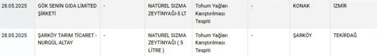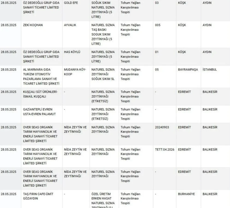 Bakanlık 13 zeytinyağı markasını ifşa etti