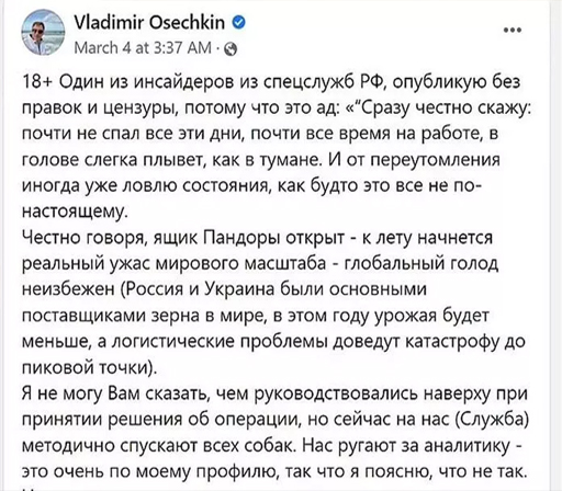 (FSB muhbirinin olduğu iddia edilen uzun gönderi insan hakları grubu Gulagu'nun direktörü tarafından paylaşıldı.)