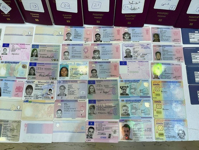 Çalıntı olduğu değerlendirilen 67 Türkiye pasaportu, F.S. adına sahte Türkiye yeşil pasaportu, Interpol'de çalıntı kaydı olan 110 yabancı pasaport, yerli ve yabancı 19 ehliyet, 40 kimlik kartı, 15 ikamet izni belgesi, farklı ülkelere ait basıma hazır 6 boş kimlik kartı, 10 pasaport yaprağı, 6 Schengen vizesi, 8 sağlık kartı, M.M. adına hazırlanmış uluslararası koruma belgesi ve 20 bin 200 lira nakit para ele geçirildi.