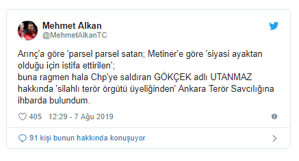 Söz konusu suç duyurusunu kişisel Twitter hesabında duyuran Alkan, şunları söyledi: