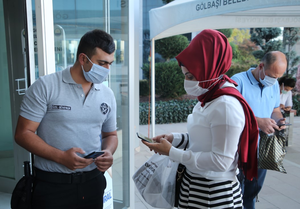 Ankara Valiliği tarafından alınan ‘Hayat Eve Sığar (HES)” uygulamasının tüm kamu kurumlarında randevu talepleri öncesi ve kamu kurumlarına girişlerde kullanılmasına’ dair kararı uygulamaya koyan Gölbaşı Belediyesi, vatandaşların ve personelin kuruma girişlerini HES kodu ile sağlıyor.