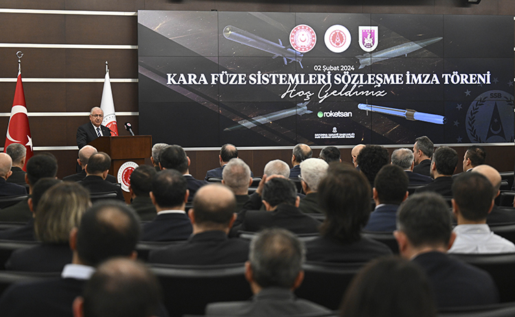 "Bu kaotik ortam, risk ve tehlikeler, her zamankinden daha öngörülemez hale gelmiştir. Dolayısıyla bu hassas dönemde ülkemizin hakkını ve hukukunu korumak için güçlü bir Silahlı Kuvvetlere sahip olmamız hayati öneme haizdir. Bu anlayışla binlerce yıllık şanlı mazisiyle dünyadaki emsalleri arasında seçkin ve saygın bir konuma sahip olan Kara Kuvvetlerimizi daha modern, daha etkin ve daha güçlü kılmak için çalışmalarımızı yoğun şekilde gayretle sürdürüyoruz. Bu çalışmalarımızın bir yansıması olarak bugün de 4 önemli füze sistemimizin tedarik sözleşmelerini imzalıyoruz."