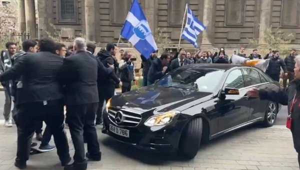 Türkiye ve KKTC düşmanları, dün ise KKTC Cumhurbaşkanı Ersin Tatar'ı hedef almıştı. Ersin Tatar'ın, İngiltere'deki King's College London'da (KCL) katılacağı program için üniversite yerleşkesine girişi, Yunanistan bayrağı taşıyan grup tarafından engellenmek istendi.
