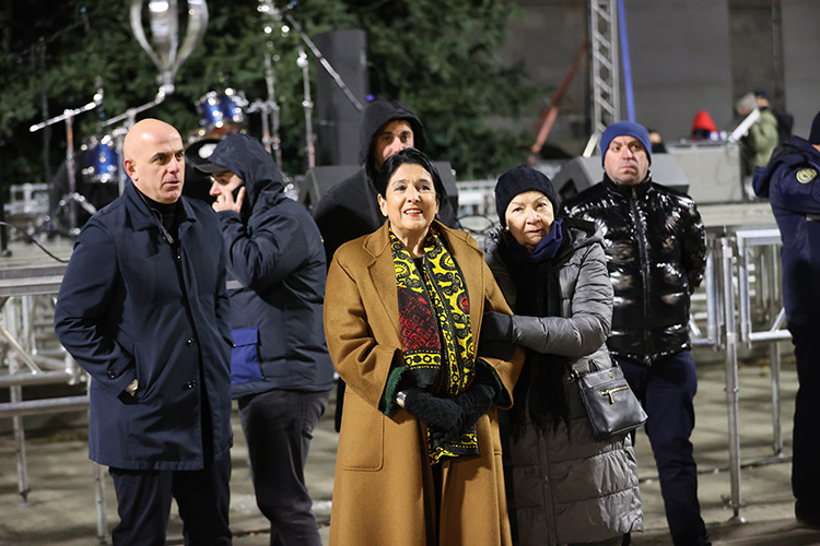 AB ile ilgili karardan dolayı hükümete tepkili Cumhurbaşkanı Zurabişvili de parlamento binasının önündeki gösteriye katıldı.