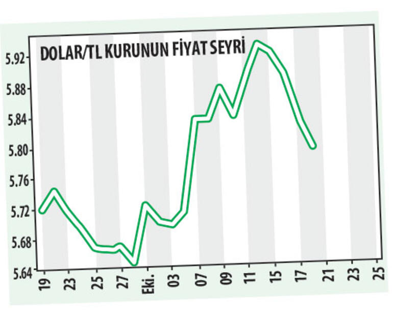 Dolar kuru 5,7896 seviyesinde bulunuyor. Hafta boyunca 5,93-5,75 aralığında bir hareket gözlendi. Dolar/TL 5,75’in altındaki hareketlerde yeniden 5,69 ve 5,63 seviyelerine doğru gerileme yaşayabilir. Ancak 5,75’in üzerindeki kalıcı hareket kurda yeninden 5,85’in üzerine doğru bir hareketi getirecek. Döviz kurundaki hareket 24 Ekim’de yapılacak PPK toplantısına da bağlı olacak. Jeopolitik risklerin azalmasıyla Merkez Bankası 200 baz puana kadar faiz indirimine gidebilir. Bu da dolara olan talebin devam etmesini gündeme getirecektir. Olası gerilimlerse TCMB’nin bu toplantıda “pas” geçmesi için bir neden olacaktır. Ancak geldiğimiz aşamada kurdaki zayıflamaların geçici olduğu görülüyor.