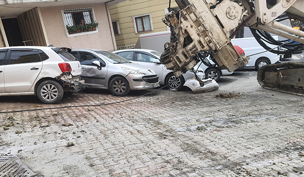 Olay, 27 Şubat’ta saat 15.30 sıralarında Çağlayan Mahallesi’nde meydana geldi. Edinilen bilgiye göre, sokak üzerindeki bir inşaat alanında yapılacak çalışma için işçiler, yaklaşık 200 ton ağırlığındaki fore kazık makinesine halat bağlayarak kepçeyle çekmek istedi. Çalışmaların başlamasının ardından kepçe makineyi çekmek için harekete geçti. Makine tam alanın girişine çekildiği sırada halat büyük bir gürültüyle koptu. Operatör Abdülcelil Bakış’ın (46) kontrolünden çıkan makine metrelerce aşağıya kaymaya başladı. Makine kayarken kopan halat iki işçinin yaralanmasına neden oldu.