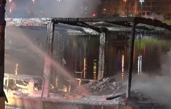 Kafe olarak kullanıldığı öğrenilen teknenin yandığını gören güvenlik görevlisi durumu itfaiye ve polis ekiplerine haber verdi. Bu sırada teknedeki yangın kısa sürede büyüyerek yan taraftaki bir başka tekneye sıçradı. Olay yerine gelen itfaiye ekipleri iskeleden yaklaşık 5 metre açıkta bulunan ve alev alev yanan iki tekneye havadan merdiven yardımıyla müdahale etti.