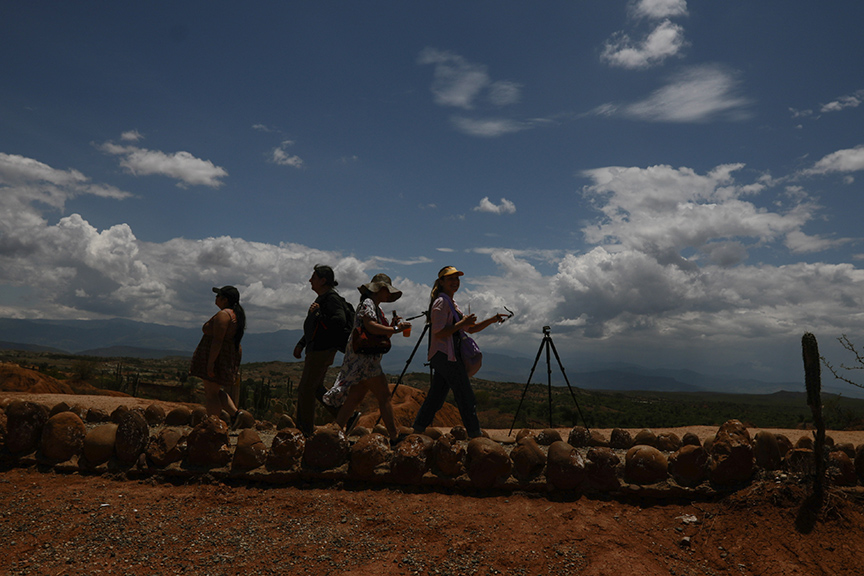 Güneş tutulmasını izlemek için çok sayıda kişinin geldiği Tatacoa Çölü'nde karatmalı gözlükler ve teleskoplar kullanıldı.