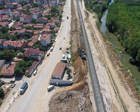 Projenin Edirne kent merkezindeki çalışmaları kapsamında ekipler, viyadük inşasını sürdürüyor.