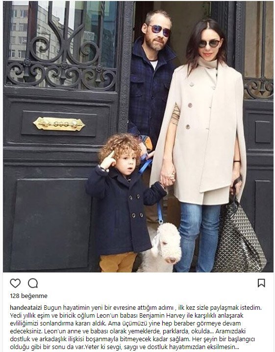 Herkes Ataizi’nin boşanmak adına ikinci bir dava açtığı haberlerini konuşurken oyuncu sosyal medya hesabından ayrıldıklarını açıkladı. İşte Hande Ataizi’nin o satırları: Bugün hayatımın yeni bir evresine attığım adımı, ilk kez sizle paylaşmak istedim. Yedi yıllık eşim ve biricik oğlum Leon'un babası Benjamin Harvey ile karşılıklı anlaşarak evliliğimizi sonlandırma kararı aldık. Ama üçümüzü yine hep beraber görmeye devam edeceksiniz. Leon'un anne ve babası olarak yemeklerde, parklarda, okulda… Aramızdaki dostluk ve arkadaşlık ilişkisi boşanmayla bitmeyecek kadar sağlam. Her şeyin bir başlangıcı olduğu gibi bir sonu da var. Yeter ki sevgi, saygı ve dostluk hayatımızdan eksilmesin…