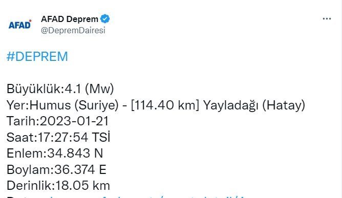 AFAD, depremin derinliğini 18,05 kilometre, büyüklüğünü de 4.1 olarak duyurdu.