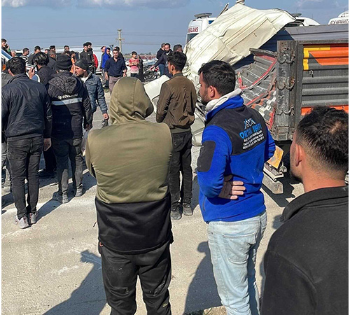 Hatay'da Antakya-Reyhanlı kara yolu Üzümdalı Mahallesi mevkisinde sürücüsünün ismi henüz öğrenilemeyen 31 C 0004 plakalı işçi servisi, park halindeki 31 B 2646 plakalı TIR'a arkadan çarptı.