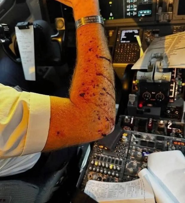 Olay, geçen perşembe günü Utah semalarında meydana geldi. United Airlines uçağı, seyir halindeyken aniden şiddetli bir çarpma sesi duyuldu. Kokpit camının sağ üst bölümüne isabet eden cisim, camın bir kısmını parçaladı. Kopan cam parçaları, pilotun kolunda derin kesikler oluştururken, bazı kontrol panelleri de zarar gördü.