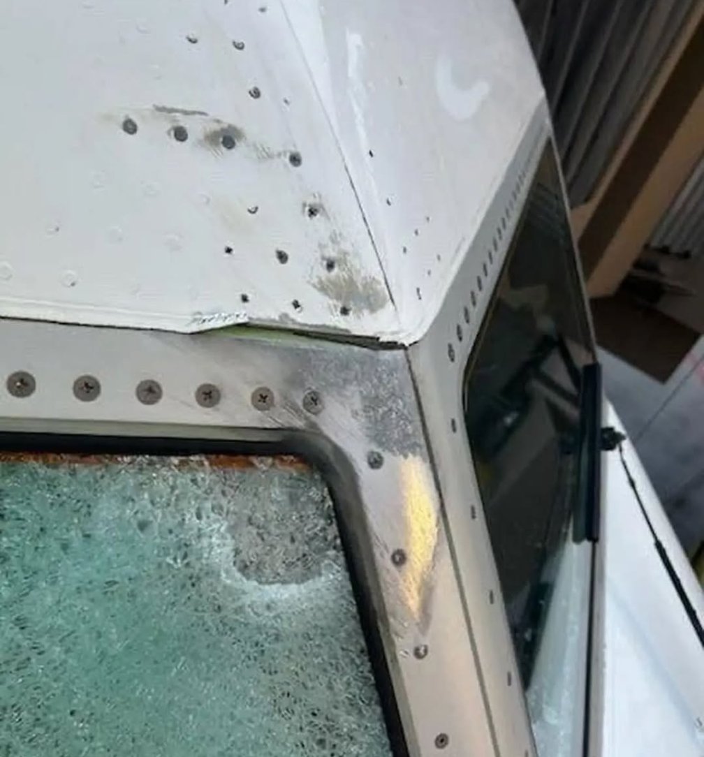 İnişin ardından olay yerine ABD Ulusal Ulaşım Güvenliği Kurulu (NTSB) ekipleri sevk edildi. Yapılan ilk incelemede, cismin camın sağ üst köşesine büyük bir kuvvetle çarptığı ve metal çerçevede de ciddi hasar bıraktığı tespit edildi.