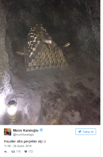 Standart bir dolandırma yöntemidir, sadece şekil değişmiş. Kurbanınıza bir şekilde ulaştıktan sonra, defineci olduğunuzu ve defineyi bulduğunuzu belirterek bu işe ortak olmasını talep edersiniz. Akabinde kazıyı yapar ve (sözde)altını bulursunuz, ama altına el sürmeden şöyle derseniz: Bu bizim için çok büyük bir tutar, sen bana 1 milyon TL ver, bu altınlarda senin olsun, biz uğraşamayız bununla… Kendini uyanık sanan ama özünde safın önde gideni olan kurbanımız, aceleyle varını yoğunu satar ve bu dolandırıcılara verir. Bu da böyle bir iş işte… Üç gün sonra aynen böyle çıkacaktır emin olun.
