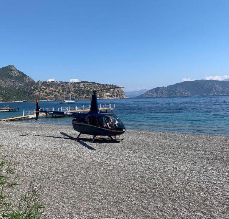 Kumlubük Koyu'ndaki 5 yıldızlı otele ait sahile, dün öğle saatlerinde Robinson R66 tipi helikopter indi. Helikopterin, sahilde güneşlenenler ve denize girenlerin şaşkın bakışları arasında plaja indiği anlar, cep telefonuyla kayda alındı, görüntüler sosyal medyada paylaşıldı. Helikopterin, otelin yanındaki yat kulübüne müşteri getirdiği ve bu kişilerin yemek yedikten sonra bir tekneye geçtiği belirtildi.