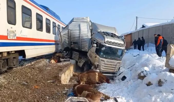 Kaza, dün öğle saatlerinde Muş Şeker Fabrikası’nın karşısındaki hemzemin geçitte meydana geldi. Merkeze bağlı Tondoğan köyünden yüklediği boğaları kantarda tartmak için kent merkezine götürmek için yola çıkan Emrah Sarsıcı yönetimindeki 34 BDM 314 plakalı TIR'a hemzemin geçitte, Elazığ- Tatvan seferini yapan yolcu treni çarptı.
