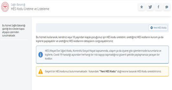 e-Devlet üzerinden HES Koduna ait işlemler; üretme, silme, sorgulama ve detaylarını görüntüleme işlemleri gerçekleştirebilirsiniz.