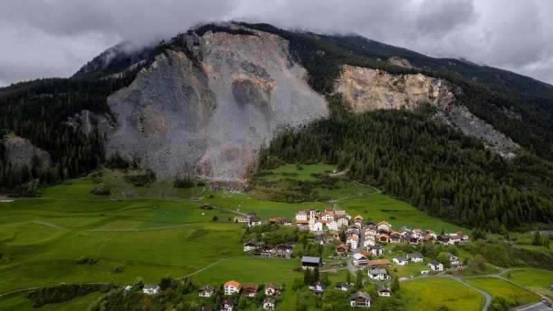 İsviçre’nin Brienz köyü, kayaların altında kalmaktan metrelerle kurtuldu.