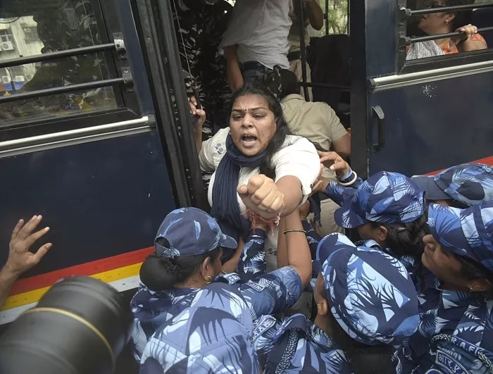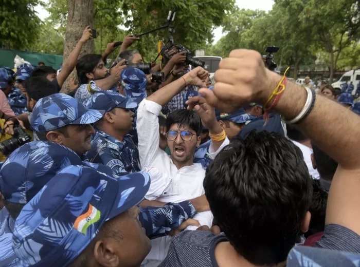 Hindistan Gençlik Kongresi üyeleri, başkent Yeni Delhi'de, rupinin değer kaybetmesini ve işsizliği protesto ettiler.
