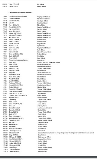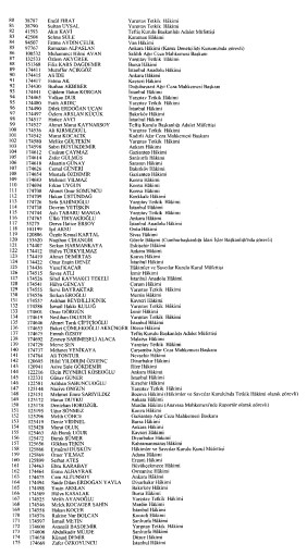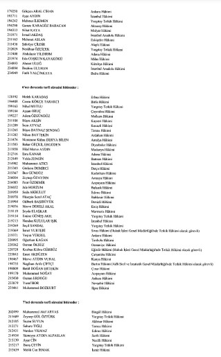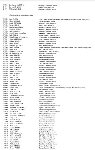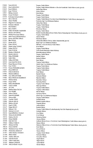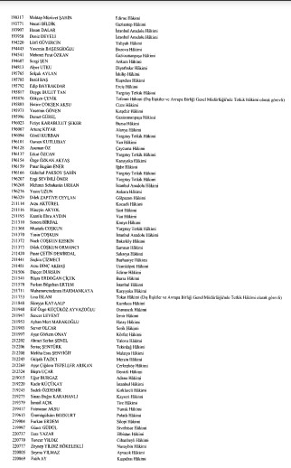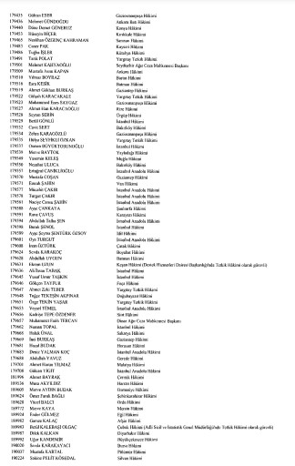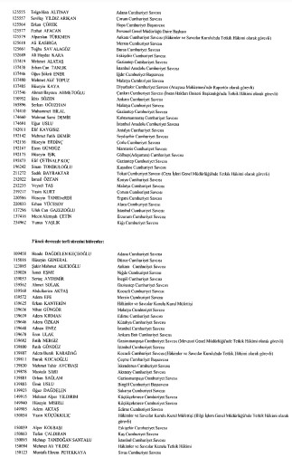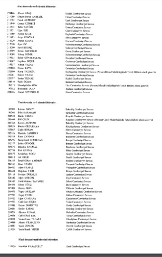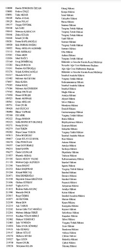 Resmi Gazete'de yayımlanan listede adlarını görmeyenlerin yayın tarihinden itibaren otuz gün içinde kurula yazılı başvuru yaparak durumlarının incelenmesini isteyebilecekleri belirtildi.