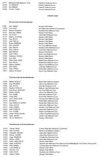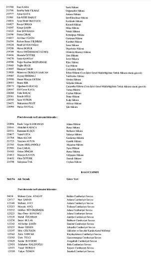 Hakim ve Savcılar Kurulu (HSK) birinci dereceye yükselmiş olup 31.12.2020 itibariyla birinci sınıfa ayrılma incelemesine tabi tutulacak olan adli yargı hakim, Cumhuriyet başsavcısı ve savcıları ile idari yargı hakimlerinin listesi yayımlandı.