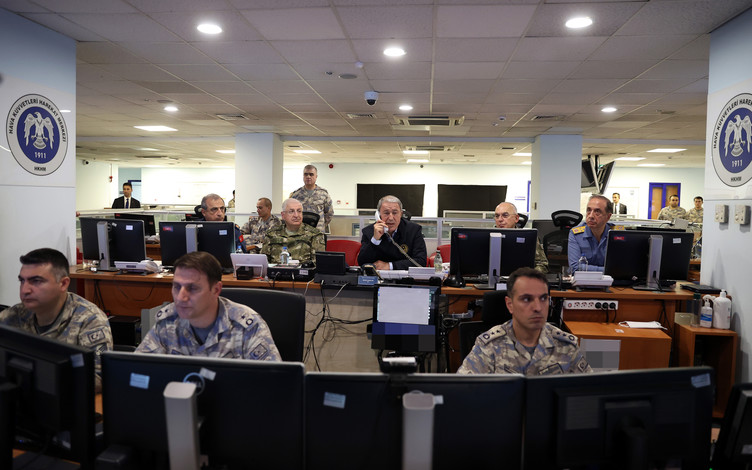 Irak ve Suriye'nin kuzeyindeki terör hedeflerinin tam isabetle vurulduğu Pençe Kılıç Harekatı'nı, Milli Savunma Bakanı Hulusi Akar, beraberindeki Türk Silahlı Kuvvetleri (TSK) komuta kademesi ile Hava Kuvvetleri Harekat Merkezi'nden sevk ve idare etti.