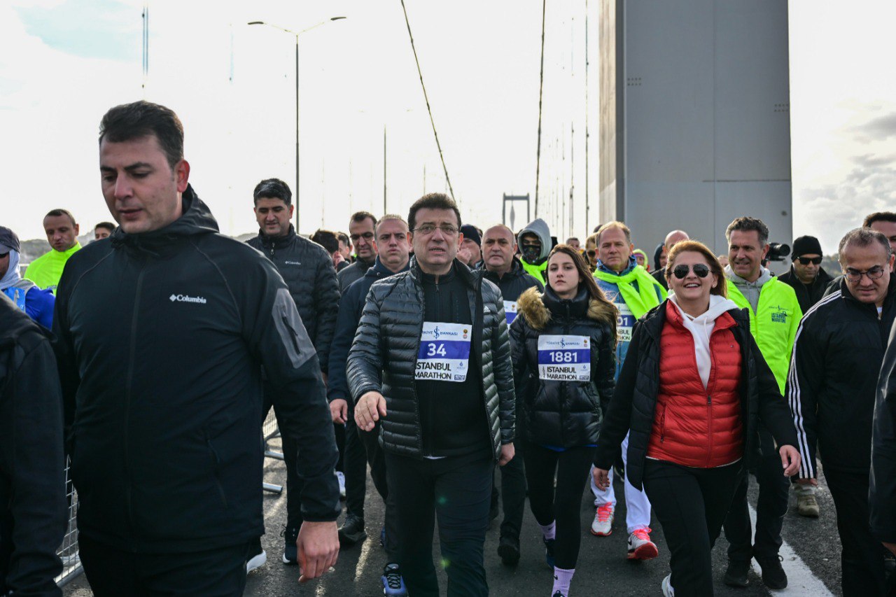 Ardından maratondaki ilk koşunun startını veren İmamoğlu, bazı ilçe belediye başkanlarıyla 15 Temmuz Şehitler Köprüsü'nden Avrupa Yakası'na yürüdü.