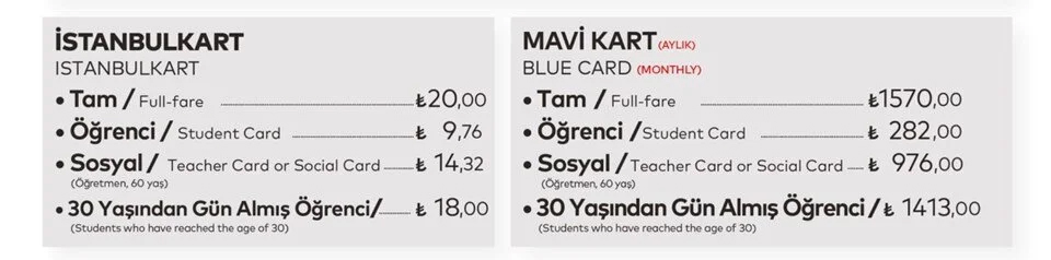İSTANBUL'DA TOPLU TAŞIMA FİYATLARI