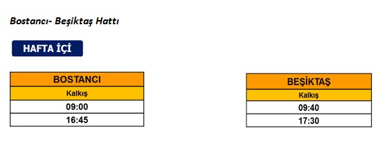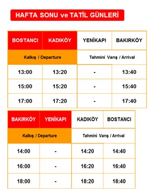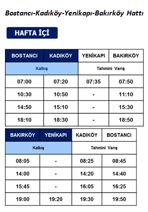 Yeni düzenlemeye göre Bostancı-Kadıköy/Yenikapı-Bakırköy hattı ve Beşiktaş-Bostancı hattı yeni sefer saatleri şu şekilde belirlenmiştir: