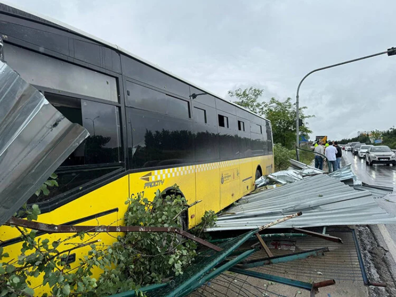 Ümraniye’de kontrolden çıkan İETT otobüsü bir iş yerinin bahçe duvarına çarparak durabildi.