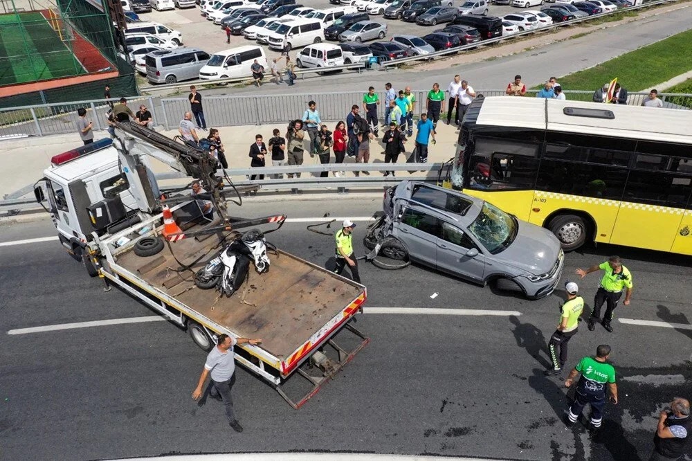 Arkadan gelen araçların da İETT otobüsüne çarpması ile 7 aracın karıştığı kaza yerine itfaiye ve sağlık ekipleri sevk edildi.