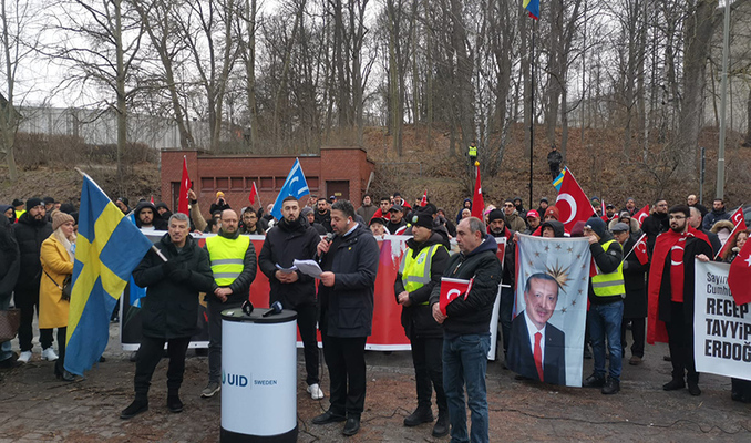 Grup adına açıklama yapan UID Bölge Başkanı Özer Eken, "İsveç'in başkenti Stockholm'de belediye binasında 11 Ocak'ta Cumhurbaşkanımız Erdoğan'a yapılan çirkin provokasyonu kınıyor ve suçluların adalet karşısına çıkarılmasını istiyoruz." dedi.
