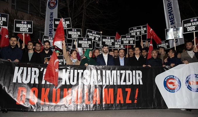 Milli Türk Talebe Birliği (MTTB) ve Genç Memur-Sen, İsveç'te Türkiye'nin Stockholm Büyükelçiliği önünde Kur'an-ı Kerim yakılmasını protesto etti.