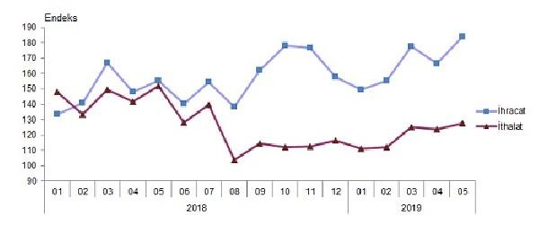 Mevsim ve takvim etkilerinden arındırılmış seriye göre; Nisan ayında 161,7 olan ihracat miktar endeksi yüde 8.5 artarak, Mayıs ayında 175.4 oldu. Takvim etkilerinden arındırılmış seriye göre ise; 2018 Mayıs ayında 149.8 olan ihracat miktar endeksi yüzde 18.4 artarak, Mayıs ayında 177.4’e yükseldi.