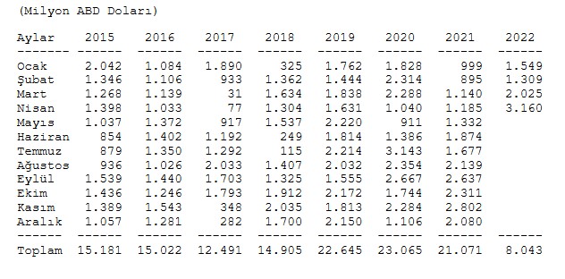 İhracat reeskont kredilerinin döviz rezervlerine katkısı nisan ayında 3 milyar 160,0 milyon dolar oldu.